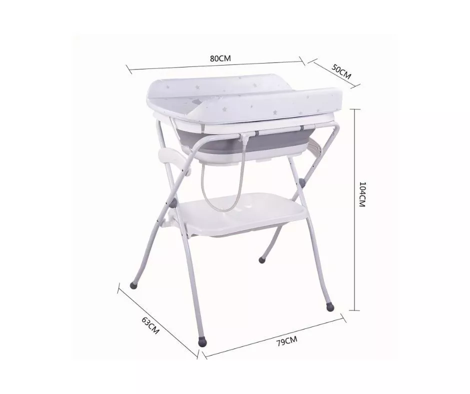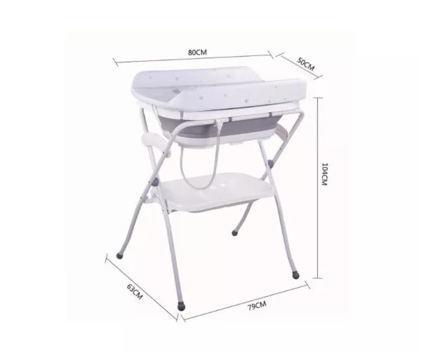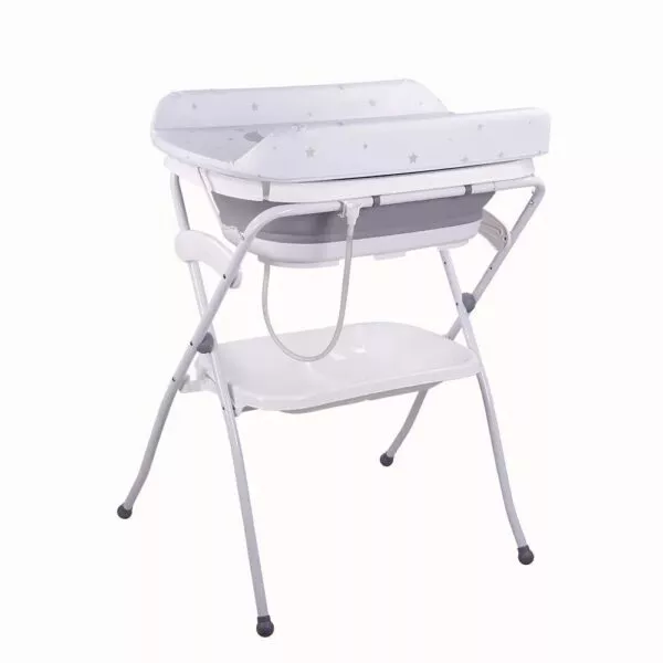 אמבטיה מתקפלת מסיליקון עם מעמד ומשטח החתלה – צבע אפור לבן