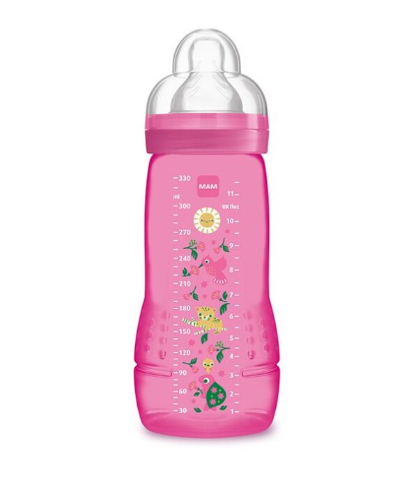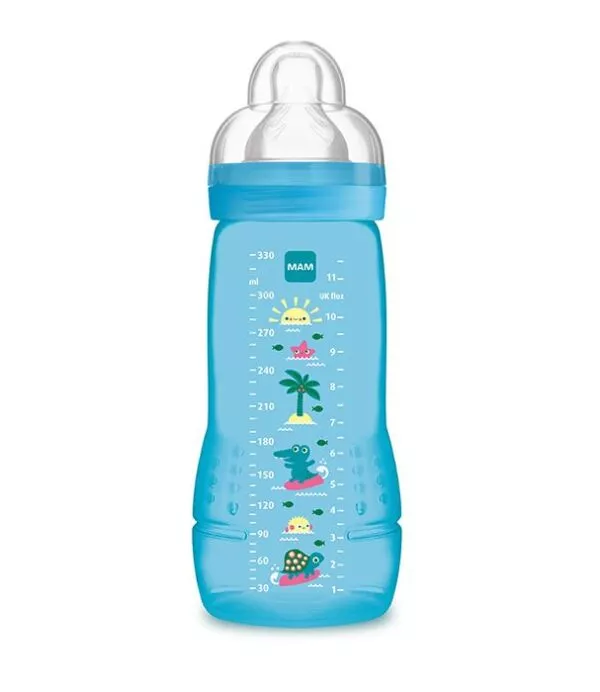 בקבוק מאמ לתינוק 330 מ"ל שאינו נפתח מלמטה עם פטמת סיליקון 3 (זרימה מהירה) .