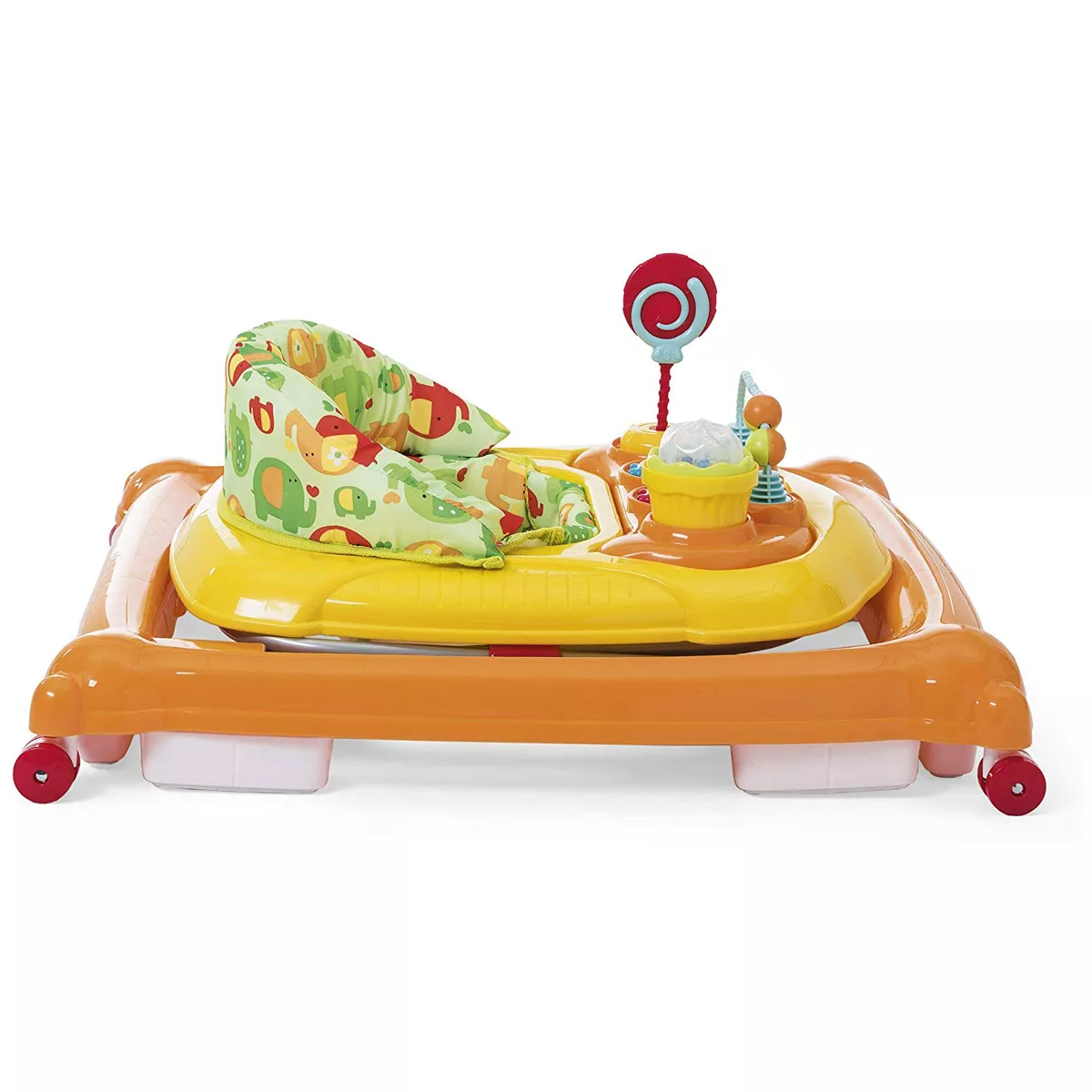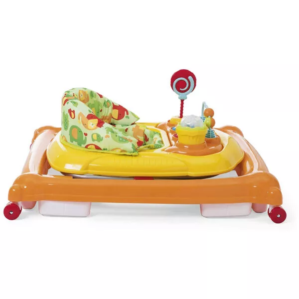 - מושב ההליכון מתכוונן לשלושה מצבי גובה, כך שרגלי ילדך יוכלו תמיד להגיע אל הקרקע.