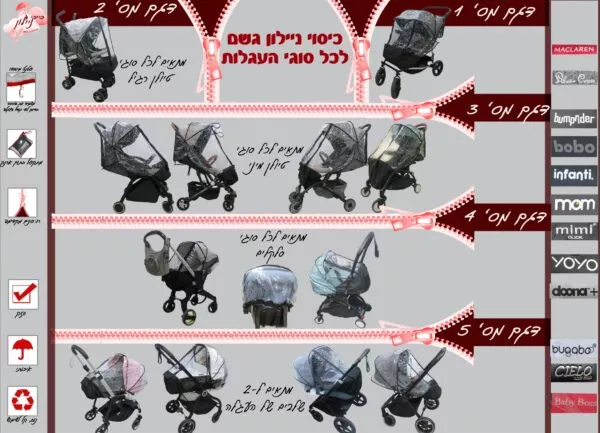 מתאימים לכל העגלות טיולונים קטנים ובינוניים תאומים וסלקלים (דונה).