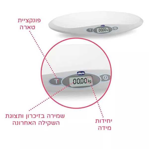 - פונקציית טארה – מדידת המשקל האחרונה נשמרת בזיכרון ומאפשרת נקודת התחלה נוחה לשקילה.