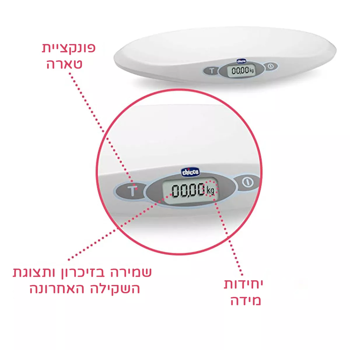 - מייצב – המשקל נוח לשימוש עם מערכת המייצבת רטט ובולמת רעידות, מייצב את השקילה כדי לזהות בצורה מדויקת ומהירה את משקל הילד גם אם הוא זז