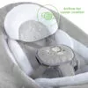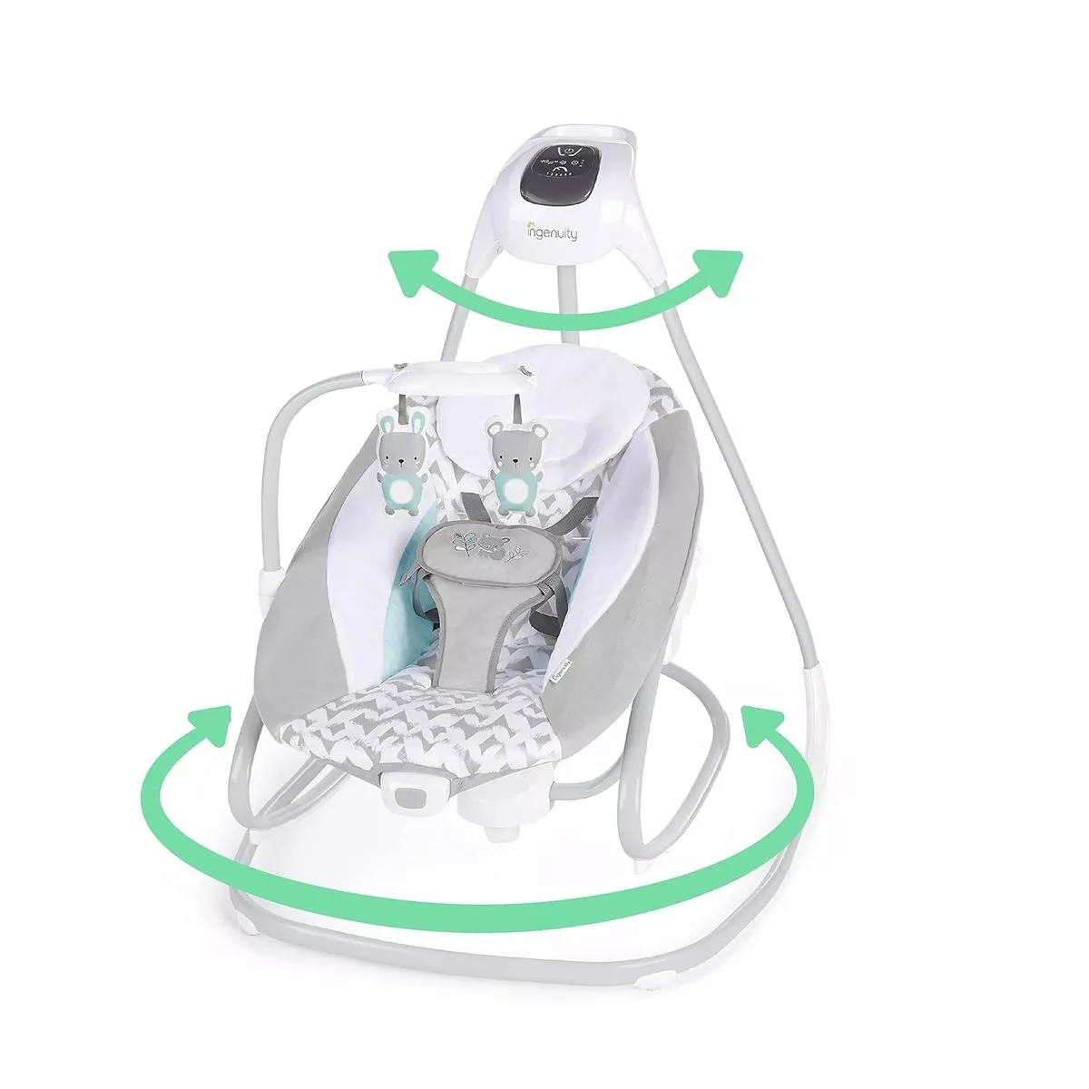 מושב הנדנדה מצטיין בשני מצבי ישיבה ומסתובב 180 מעלות ימינה ושמאלה-מאפשר לתינוק ולאימא טווח ראייה רחב וקשר עין רציף.