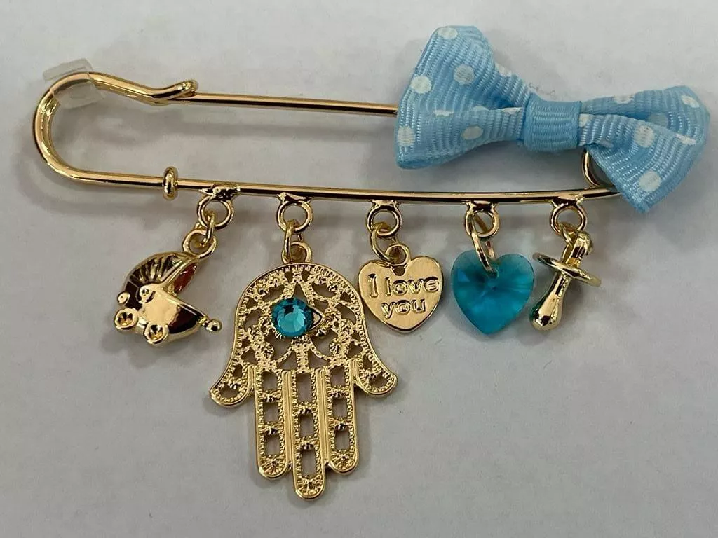 על גבי הסיכה 4 אלמנטים מוכספים / מוזהבים או צבועים + חרוז
