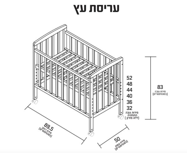 לעריסה 6 מצבי גובה הניתנים לשינוי.