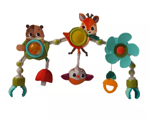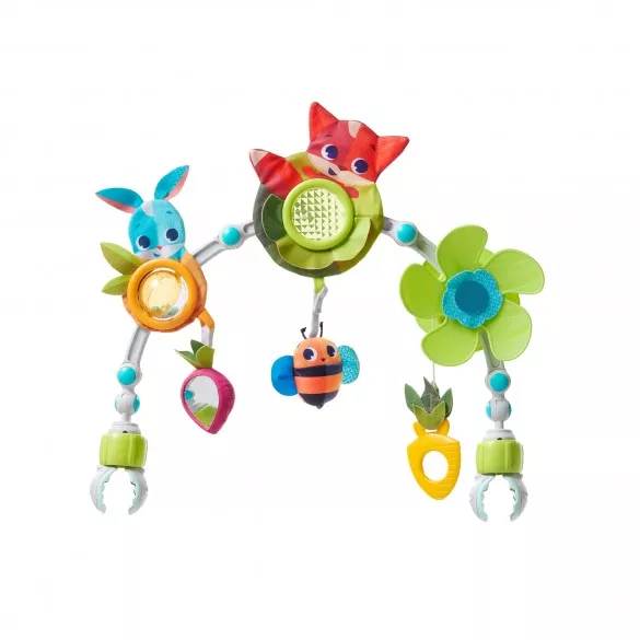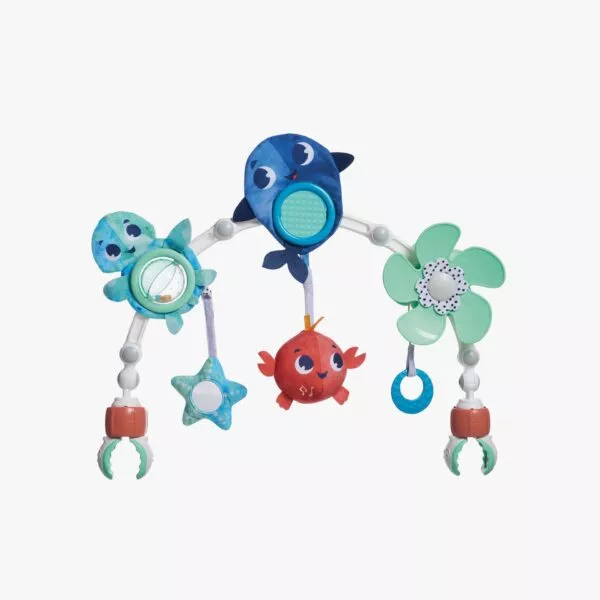 הקשת כולל 6 צעצועים מהנים, המותאמים במיוחד לפעוטות. שלושה מהם נמצאים על הקשת עצמה, והשלושה הנוספים תלויים בקשת. הצעצועים המעניינים והמרגשים יעסיקו את התינוק בעגלה או בסל-קל, מסייעים בפיתוח מיומנויות חשיבה ותחושת המישוש.