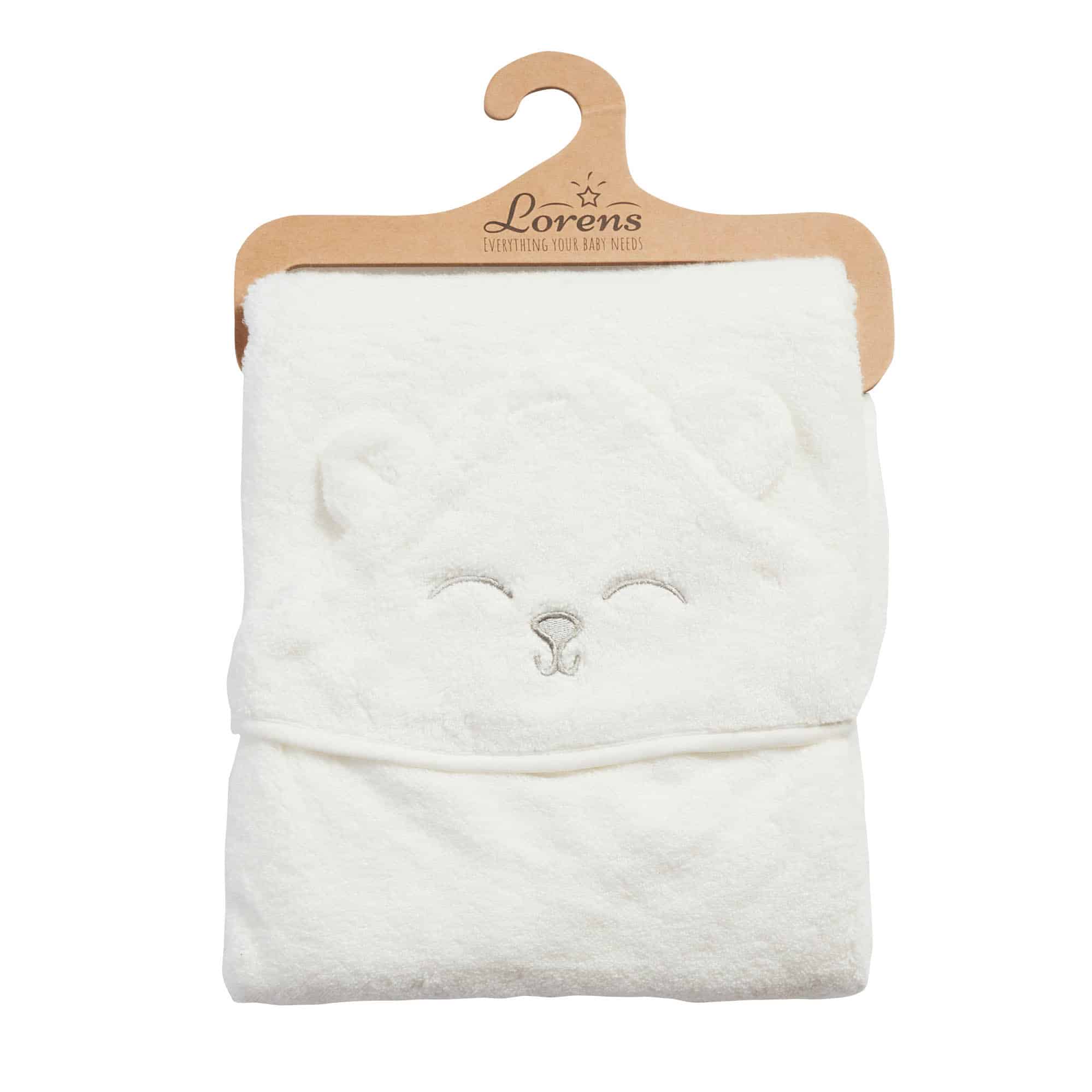 למגבת יש כובע קפוצ’ון לעיטוף ראשו של התינוק.