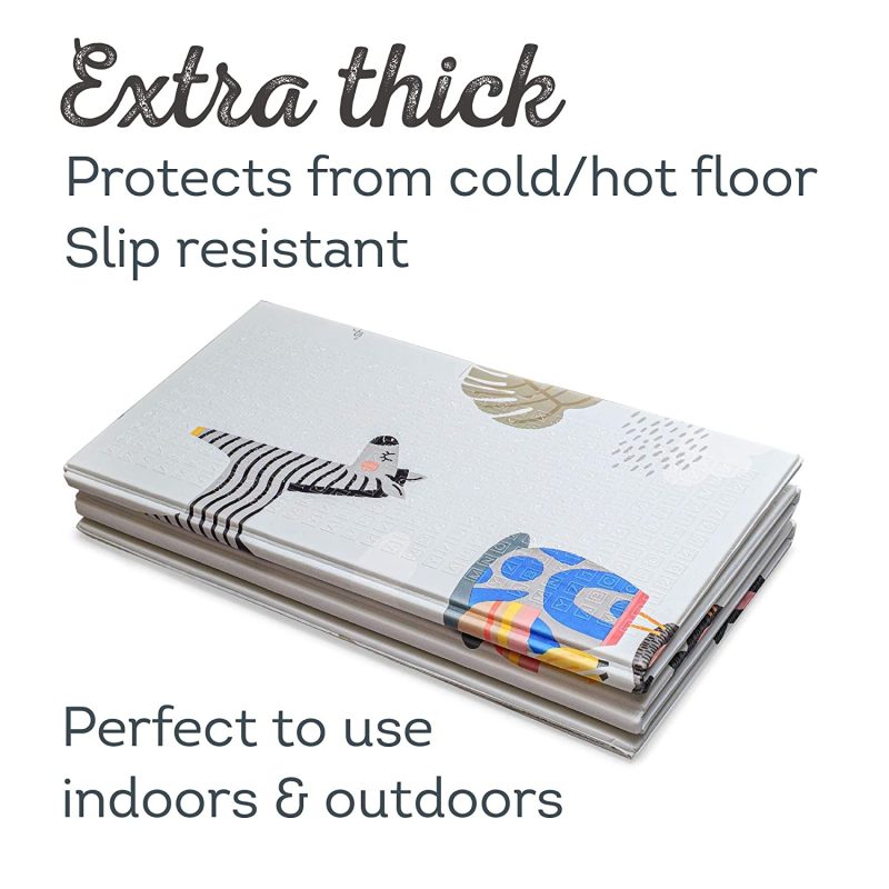 המשטח מתאים למשחק בחלל – חוץ ופנים – מושלם לזמן הבטן ועד לזחילה ולצעדים הראשונים. משטח הפעילות מרופד ועבה ועשוי מהאיכות הגבוהה ביותר של קצף רך לנוחות! הודות לריפוד המחצלת התינוק יכול לשחק על הריצפה גם בחום וגם בקור.