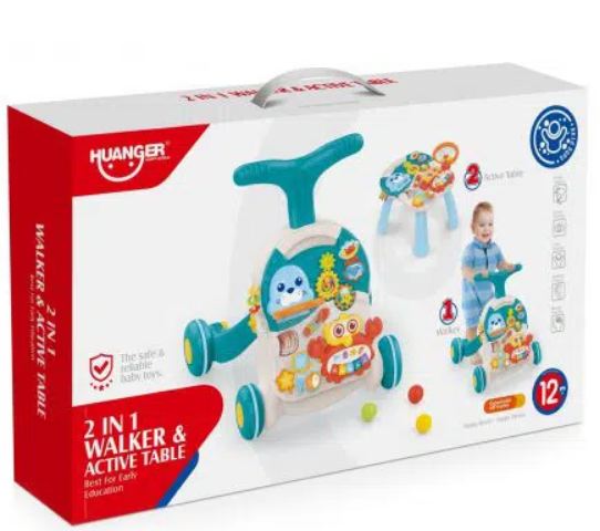 צעצוע לתינוק 2 ב- 1: גם שולחן פעילות וגם הליכון